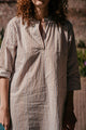 Son encolure tunisienne boutonnée apporte une touche raffinée et féminine, tandis que sa coupe fluide assure confort et liberté de mouvement au quotidien.