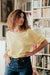 Son coloris jaune pâle illumine le teint et encolure bateau ainsi que ses manches très légèrement bouffantes vous garanti un look confortable et élégantes sans efforts.