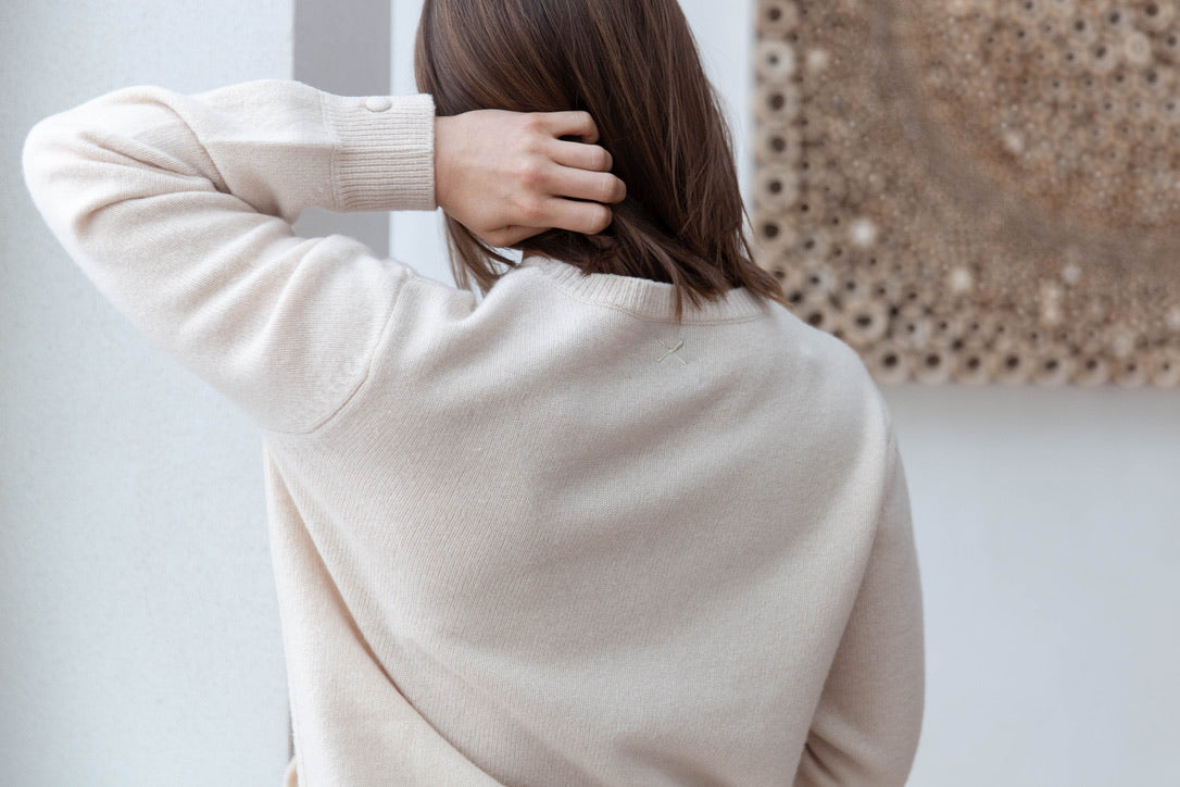 Tricoté en maille jersey 3 fils , 100 % cachemire , ce pull ras-du-cou allie douceur et tenue. Sa signature : des poignets boutonnés façon chemise — à porter fermés pour une ligne nette ou légèrement ouvertes pour un look décontracté.